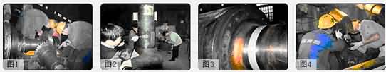 圖3: 軋鋼廠中厚板車間,軋輥長期工作,工作軸頸(Ф500×1000)嚴(yán)重劃傷,已經(jīng)無法正