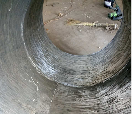 洛陽融基工貿(mào)有限公司的RJ-YHL-2.0-3.0高分子陶瓷聚合物耐磨涂層(洛陽融基工貿(mào)公司專利產(chǎn)品)是一種可以在高溫中起到耐磨防腐作用的耐磨涂層,RJ-YHL-2.0-3.0耐磨防腐涂層在脫硫管道里的應用效果與涂層的厚度有關,每2mm耐磨層的耐磨性能是碳鋼1-4倍,也就是說如果做3mm厚,可以達到平均使用壽命2-6倍,且施工簡單,效率高。足以保證脫硫管道的正常輸送任務。